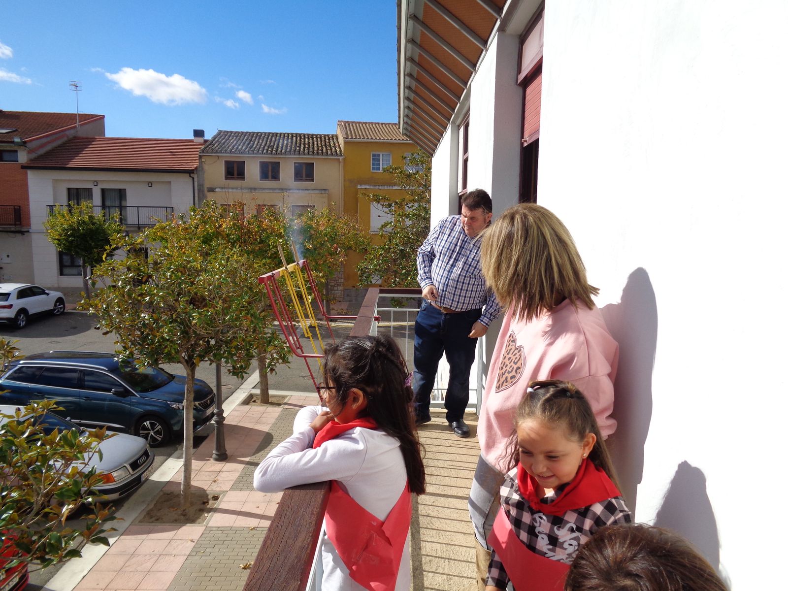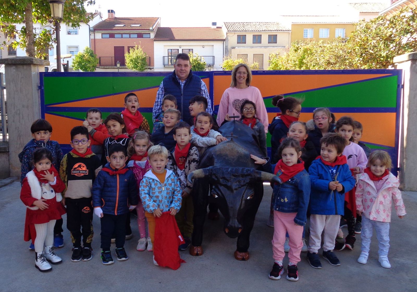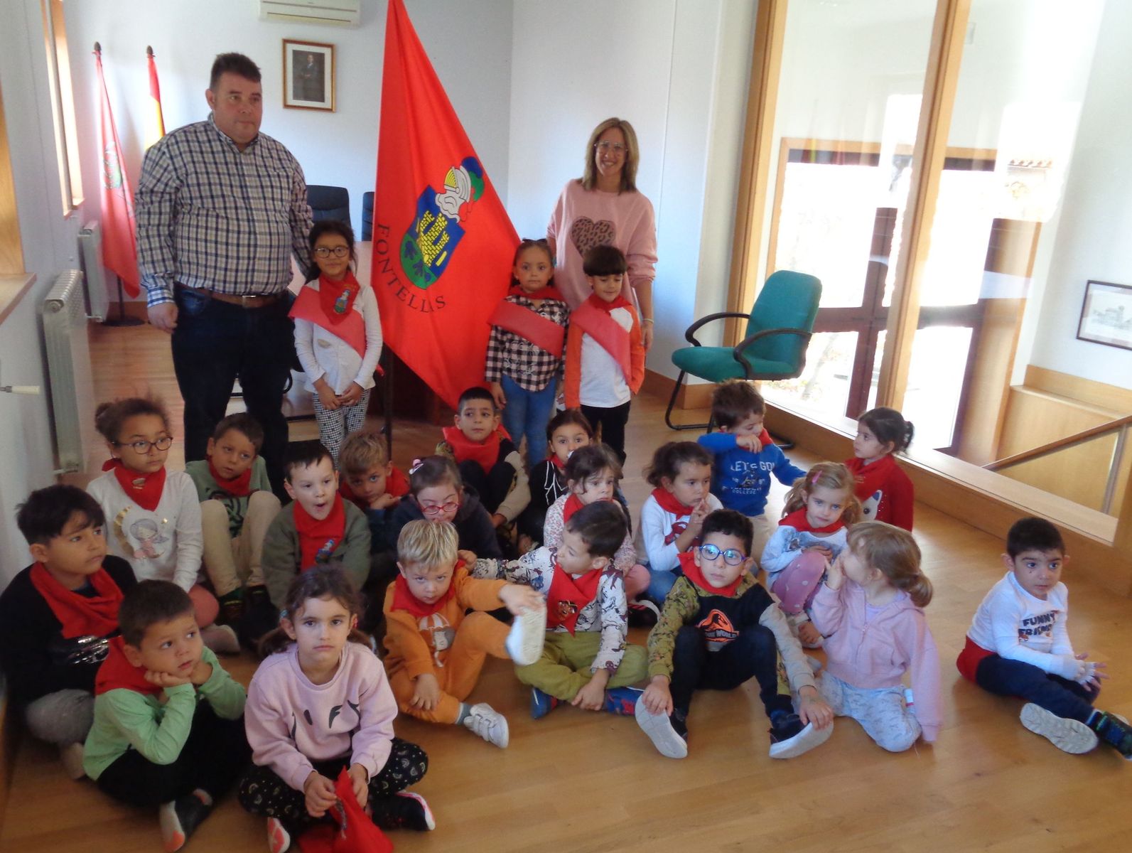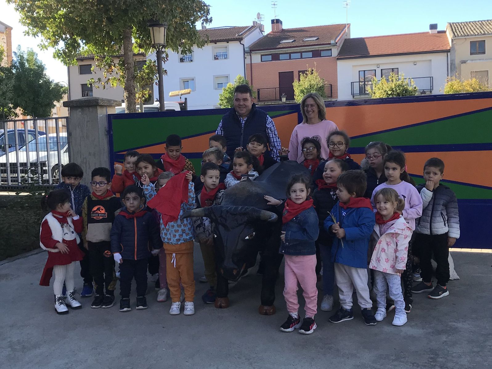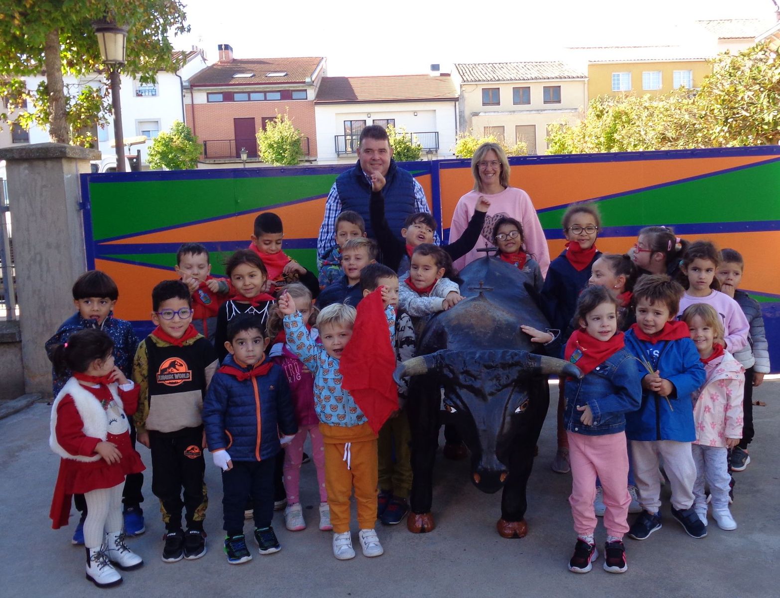 Durante estos meses, los alumnas y alumnas de Educación Infantil has estado trabajando sobre las fiesta de Fontellas. En Primaria también las hemos comentado las últimas semanas. Como para aprender las cosas hay que practicarlas, nada mejor organizar un chupinazo. Hemos visto el auténtico Toro de Fuego y el corral de las vacas. También hemos visitado el ayuntamiento, donde hemos entrevistado a Erika, nuestra alcaldesa. Luego Erika y Víctor nos han enseñado todas las dependencias. Finalmente ha llegado el momento más importante, el chupinazo. En el balcón estaban Erika, Víctor y tres concejales y concejalas honorarios (Antonio, Ariadna y Camila). En la plaza estábamos las tres peñas (una por clase) con nuestros pañuelos y pancartas. También han salido los gigantes. Vamos que ha sido una mañana completa. Gracias a Erika y a todos las personas del Ayuntamiento por su amabilidad.