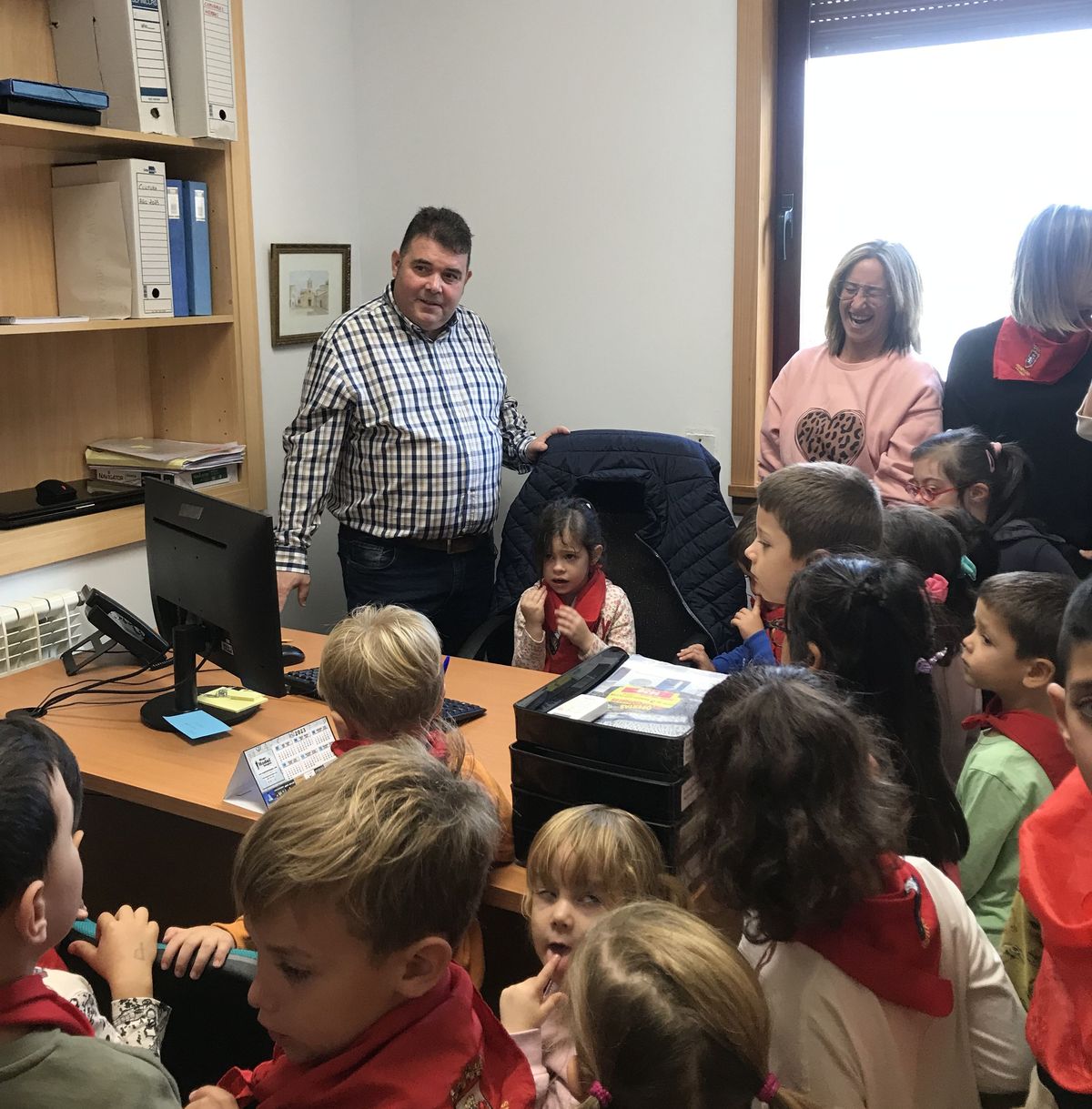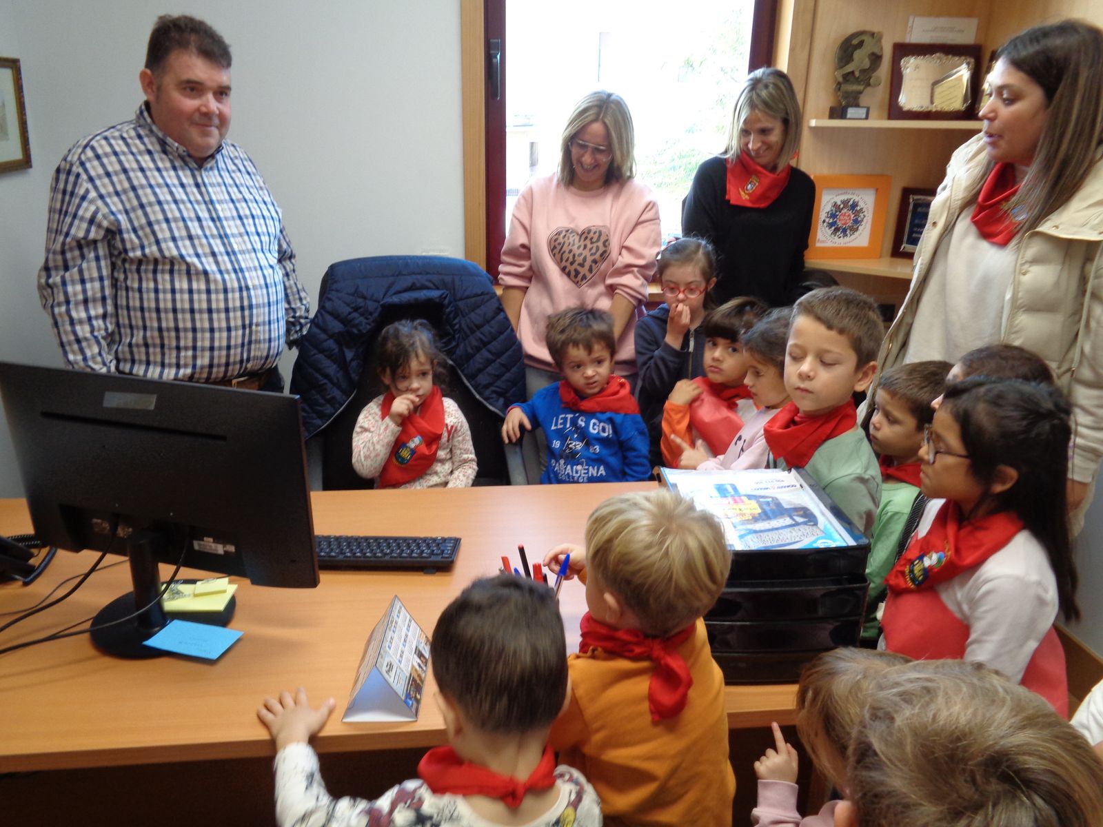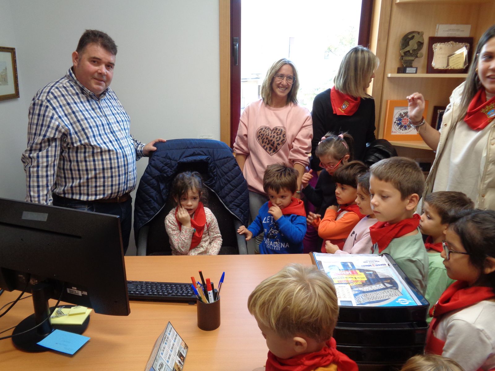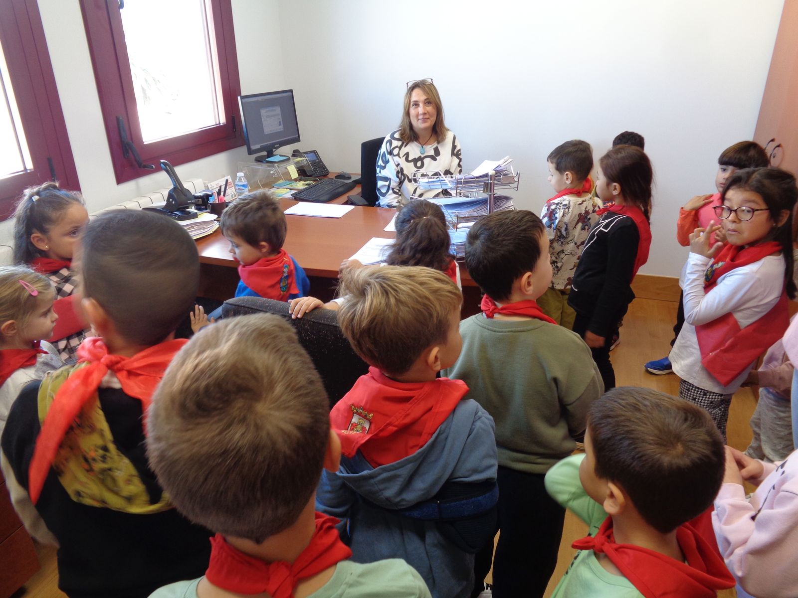Durante estos meses, los alumnas y alumnas de Educación Infantil has estado trabajando sobre las fiesta de Fontellas. En Primaria también las hemos comentado las últimas semanas. Como para aprender las cosas hay que practicarlas, nada mejor organizar un chupinazo. Hemos visto el auténtico Toro de Fuego y el corral de las vacas. También hemos visitado el ayuntamiento, donde hemos entrevistado a Erika, nuestra alcaldesa. Luego Erika y Víctor nos han enseñado todas las dependencias. Finalmente ha llegado el momento más importante, el chupinazo. En el balcón estaban Erika, Víctor y tres concejales y concejalas honorarios (Antonio, Ariadna y Camila). En la plaza estábamos las tres peñas (una por clase) con nuestros pañuelos y pancartas. También han salido los gigantes. Vamos que ha sido una mañana completa. Gracias a Erika y a todos las personas del Ayuntamiento por su amabilidad.