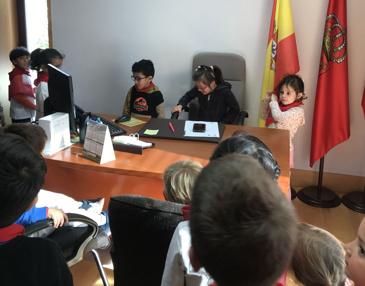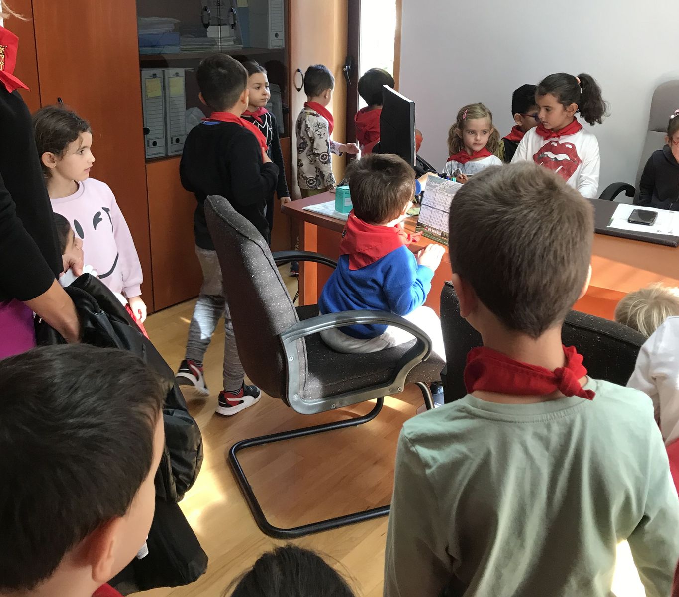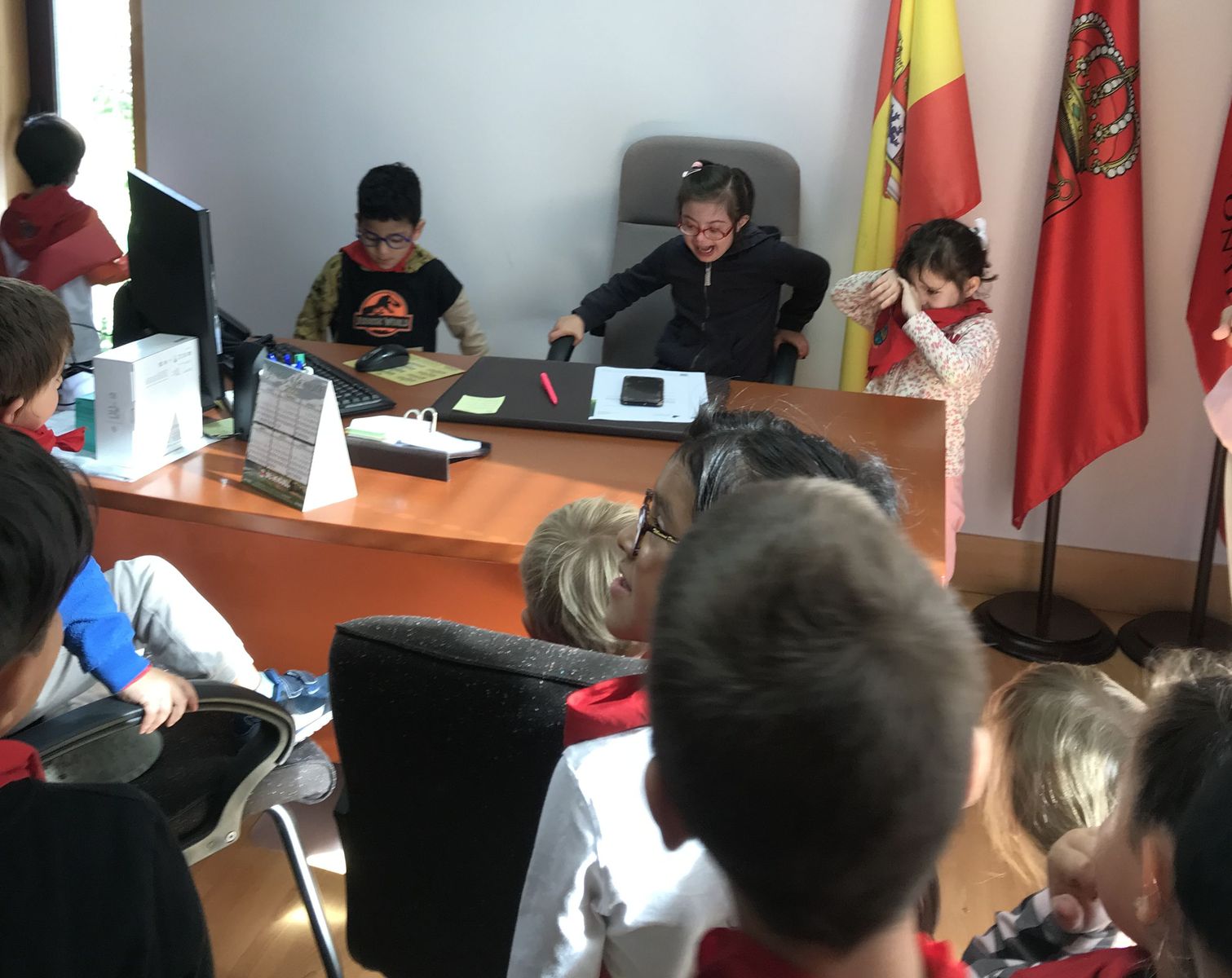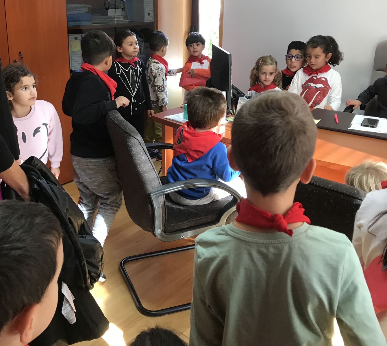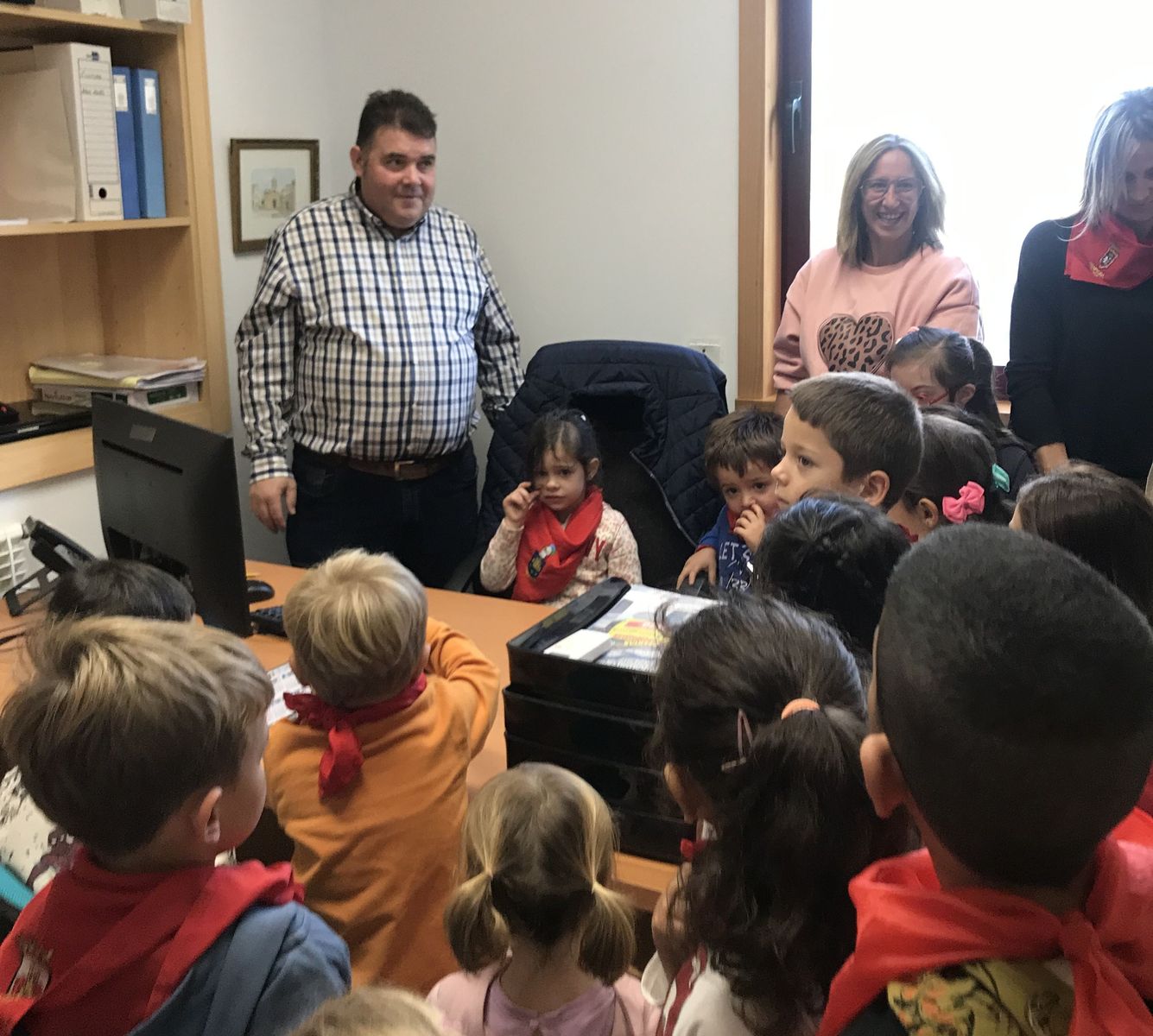 Durante estos meses, los alumnas y alumnas de Educación Infantil has estado trabajando sobre las fiesta de Fontellas. En Primaria también las hemos comentado las últimas semanas. Como para aprender las cosas hay que practicarlas, nada mejor organizar un chupinazo. Hemos visto el auténtico Toro de Fuego y el corral de las vacas. También hemos visitado el ayuntamiento, donde hemos entrevistado a Erika, nuestra alcaldesa. Luego Erika y Víctor nos han enseñado todas las dependencias. Finalmente ha llegado el momento más importante, el chupinazo. En el balcón estaban Erika, Víctor y tres concejales y concejalas honorarios (Antonio, Ariadna y Camila). En la plaza estábamos las tres peñas (una por clase) con nuestros pañuelos y pancartas. También han salido los gigantes. Vamos que ha sido una mañana completa. Gracias a Erika y a todos las personas del Ayuntamiento por su amabilidad.