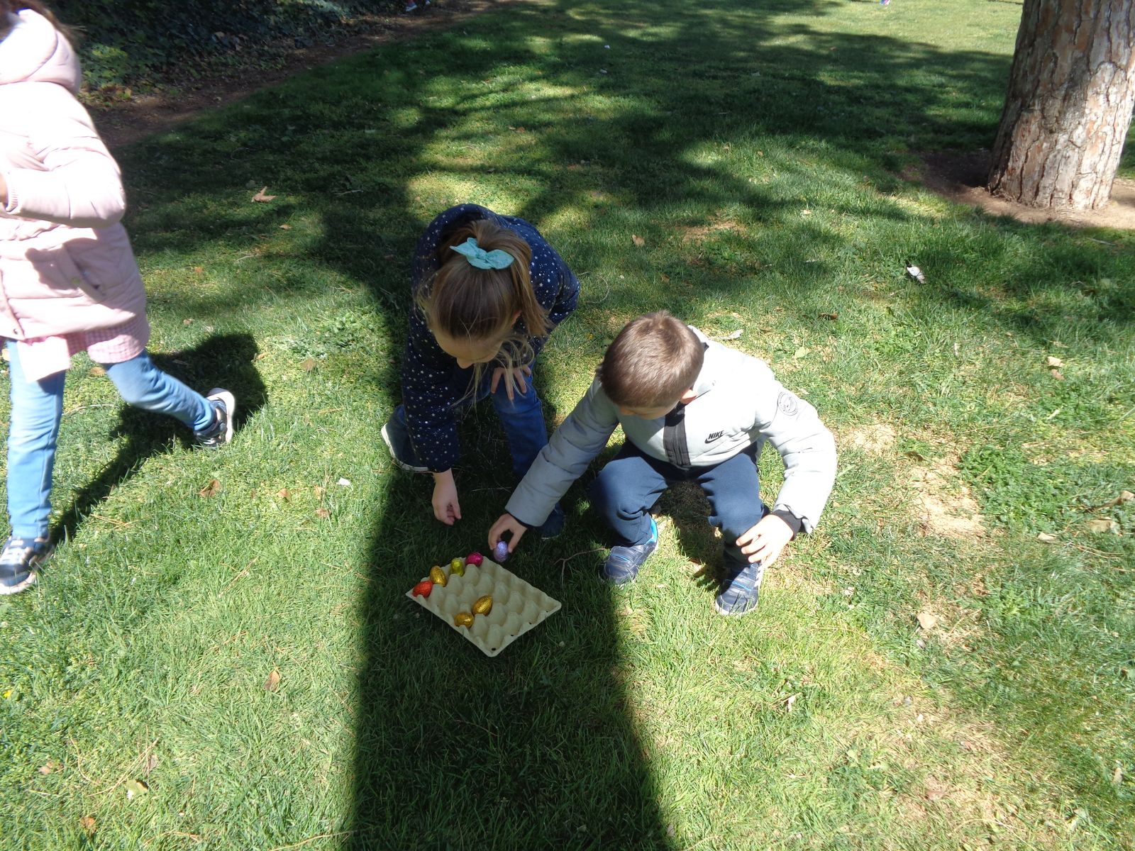 Hoy hemos bajado al huerto para ver el almendro, que ya ha perdido las flores y está lleno de almendras, y el membrillo que está lleno de flores. Habrá que esperar a la vuelta para ver los pequeños membrillos asomando. Luego nos ha visitado el conejo de Pascua. Había dejado muchos huevos de chocolate escondidos, pero nuestras investigadoras y nuestros detectives los han encontrado todos. Ahora vienen unos días de descanso, que los tienen bien merecidos, porque han trabajo mucho y bien durante este trimestre.